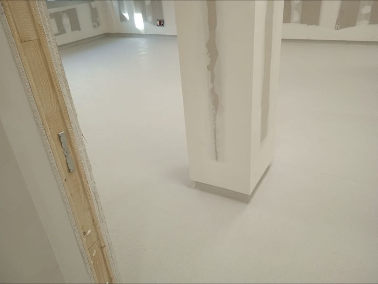 Instalación de pavimento vinílico homogéneo en Centro Médico de empresa privada.